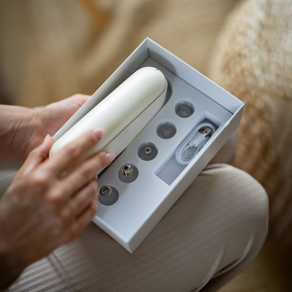 W zestawie znajduje się poręczne pudełko do przechowywania, które doskonale sprawdzi się w podróży. Dzięki niemu możesz bezpiecznie przechowywać urządzenie i wszystkie jego akcesoria w jednym miejscu.