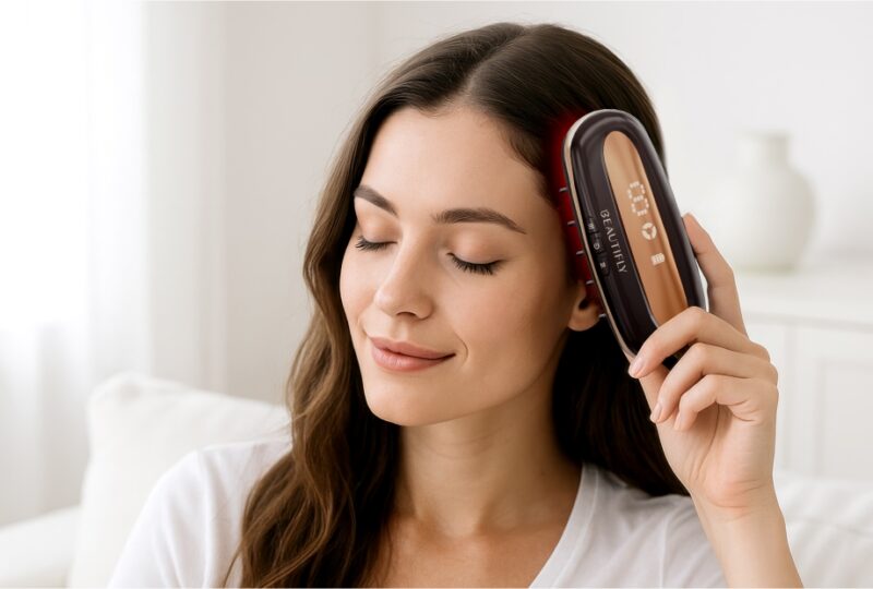 Terapia niskopoziomowym światłem laserowym (LLLT) o długości fali 650 nm wspomaga odbudowę komórek skóry głowy, wzmacnia cebulki i stymuluje porost włosów. To technologia stosowana w profesjonalnych zabiegach trychologicznych, teraz dostępna w domowym zaciszu.