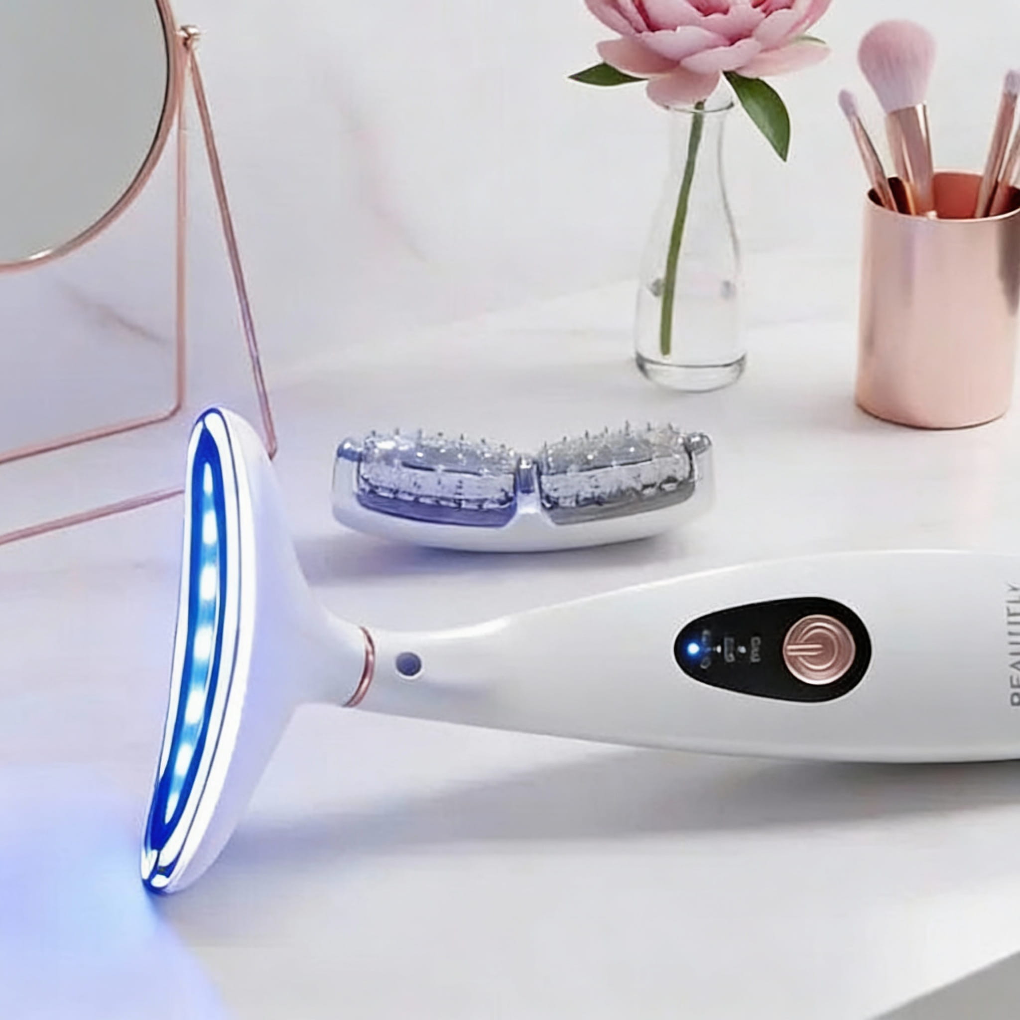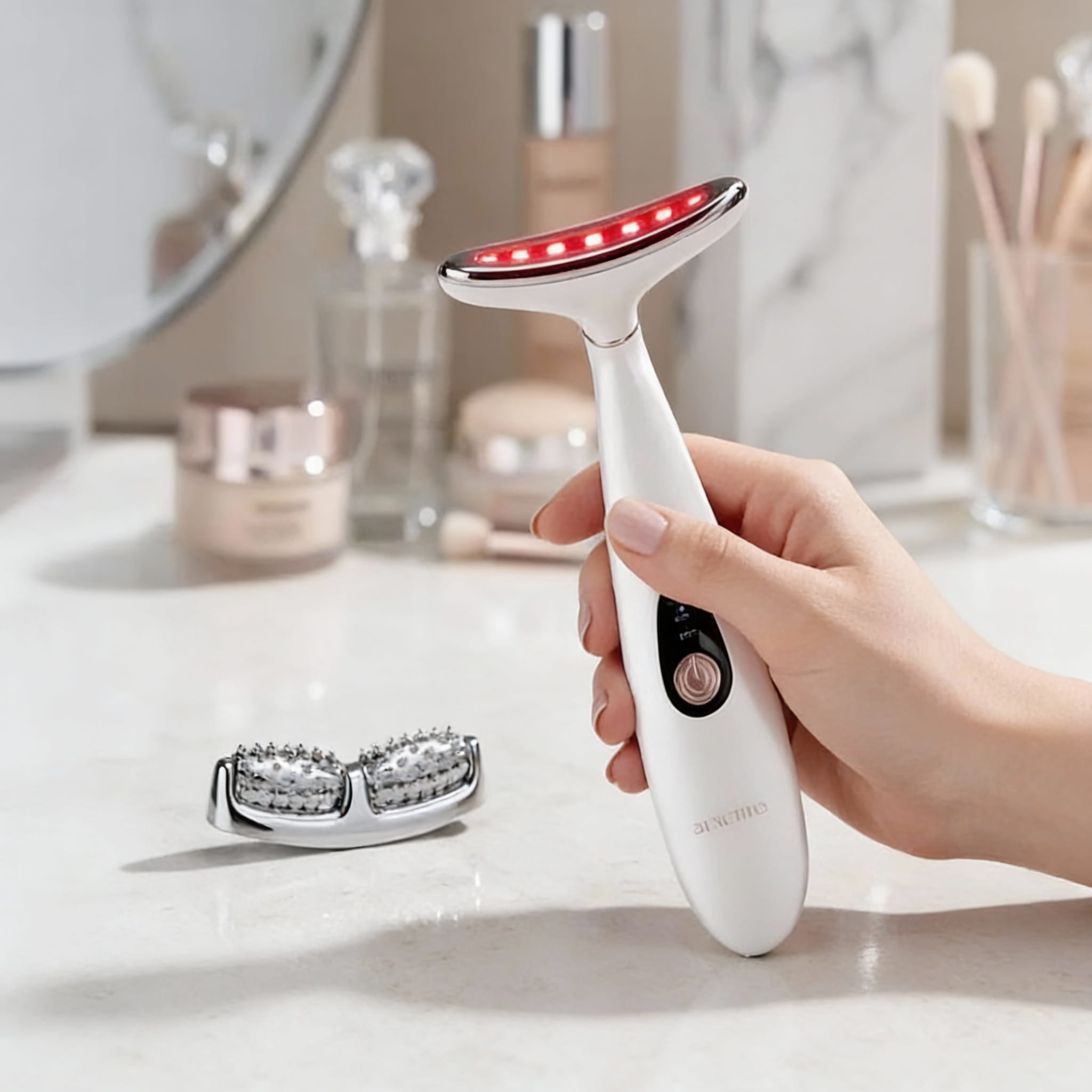 Dzięki technologii LED i mikroprądom EMS, LumaLift Pro kompleksowo pielęgnuje skórę twarzy i szyi – poprawia jędrność, redukuje zmarszczki i stymuluje produkcję kolagenu. Połączenie świateł LED, ciepła i mikroprądów EMS wspiera regenerację, ujędrnia i rozświetla skórę, dając efekt liftingu jak po profesjonalnym zabiegu.