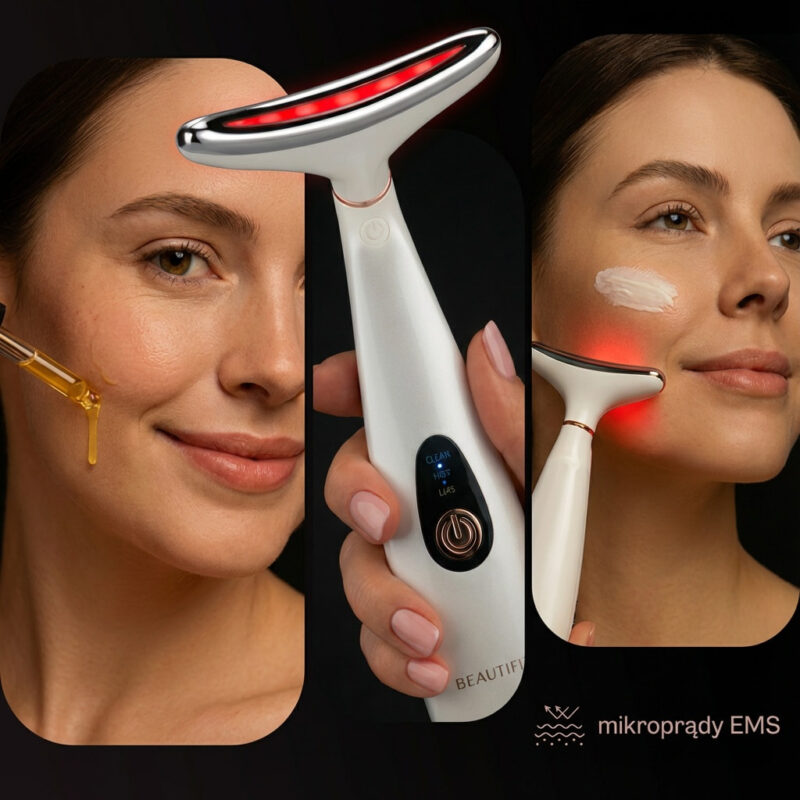 Mikroprądy EMS to delikatne impulsy elektryczne, które naśladują naturalną aktywność mięśni twarzy. W połączeniu z ulubionym kremem lub olejkiem wspomagają odnowę skóry i zwiększają skuteczność pielęgnacji. Stymulują mięśnie, poprawiają napięcie i elastyczność, dzięki czemu cera zyskuje gładkość, jędrność i promienny wygląd – jak po profesjonalnym liftingu.