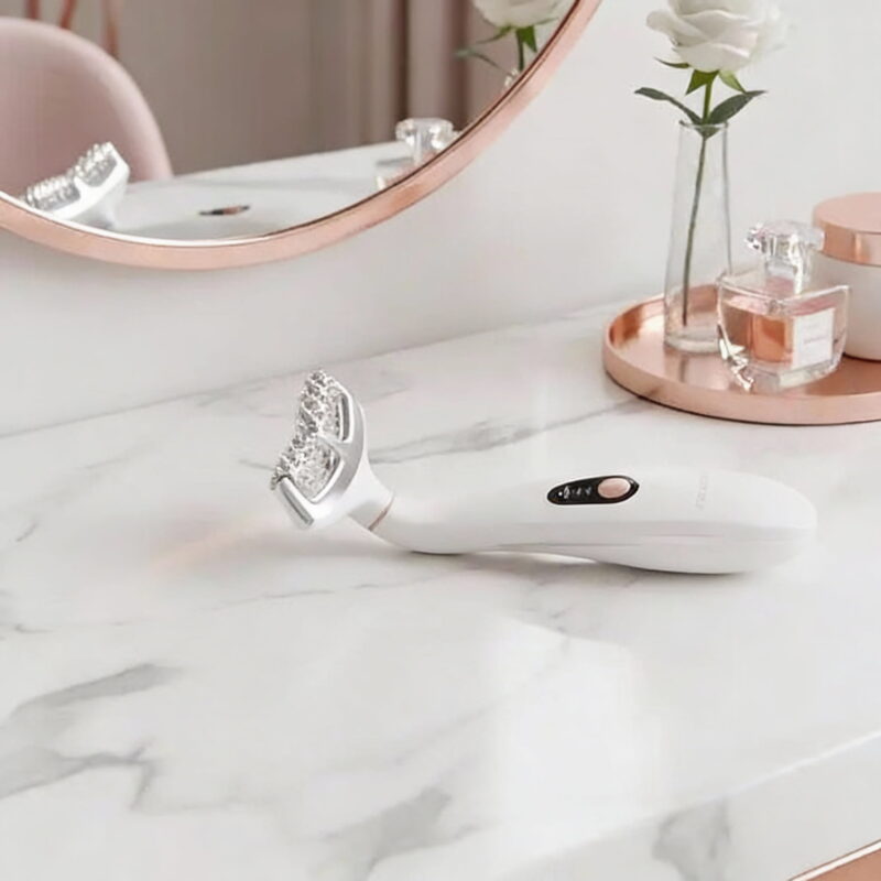 Specjalna końcówka 3D z metalicznymi wypustkami wykonuje masaż liftingujący, który usprawnia krążenie i pomaga pozbyć się opuchnięć. Działa jak drenaż limfatyczny – rozluźnia mięśnie, poprawia wchłanianie składników aktywnych i pozostawia uczucie odprężenia. To chwila dla siebie, dzięki której skóra staje się aksamitna, a twarz wygląda młodziej.