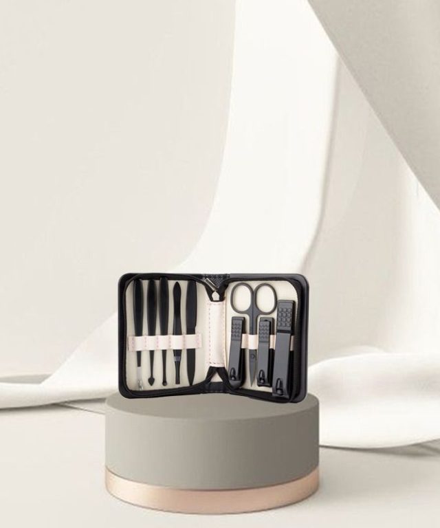 Zestaw zawiera 9 narzędzi do pielęgnacji dłoni, stóp oraz twarzy, idealny zarówno w salonie jak i w domu, zapakowany w eleganckie etui, które ułatwia przechowywanie czy podróżowanie.